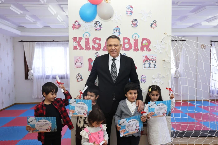 Iğdır Üniversitesi bünyesinde faaliyet gösteren Püster Alagöz Anaokulunda düzenlenen karne programına katılan Rektör Prof. Dr. Ekrem Gürel, öğrencilerin ilk karne heyecanına ortak oldu.