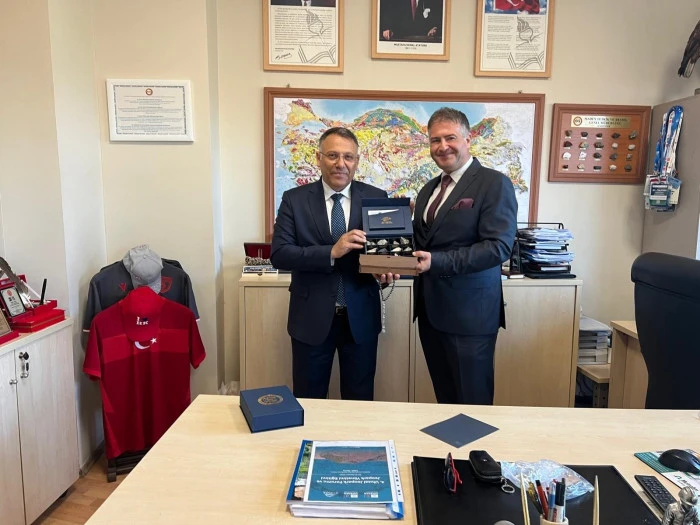Ankara temaslarını Maden Tetkik ve Arama (MTA) Genel Müdürlüğü ziyareti ile sürdüren Rektör Gürel, MTA Genel Müdür Yardımcısı Veli Altundağ ile bir araya gelerek jeolojik araştırmalar, bölgesel potansiyeller ve ortak projeler üzerine verimli bir istişare gerçekleştirdi. Ziyaret kapsamında MTA Şehit Cuma Dağ Tabiat Tarihi Müzesi de gezilerek müzenin bilimsel koleksiyonları ve yürütülen çalışmalar hakkında bilgi alındı. Ağrı Dağı ve çevresinin jeolojik mirasına yönelik ortak araştırmaların geliştirilmesi konusunda görüş birliğine varılırken, Iğdır’da fosili bulunan dev gergedanın sembolleştirilmesi amacıyla ortak çalışma yürütülmesi kararlaştırıldı. Prof. Dr. Gürel, MTA ile mevcut iş birliğinin daha da derinleşeceğini ifade etti.